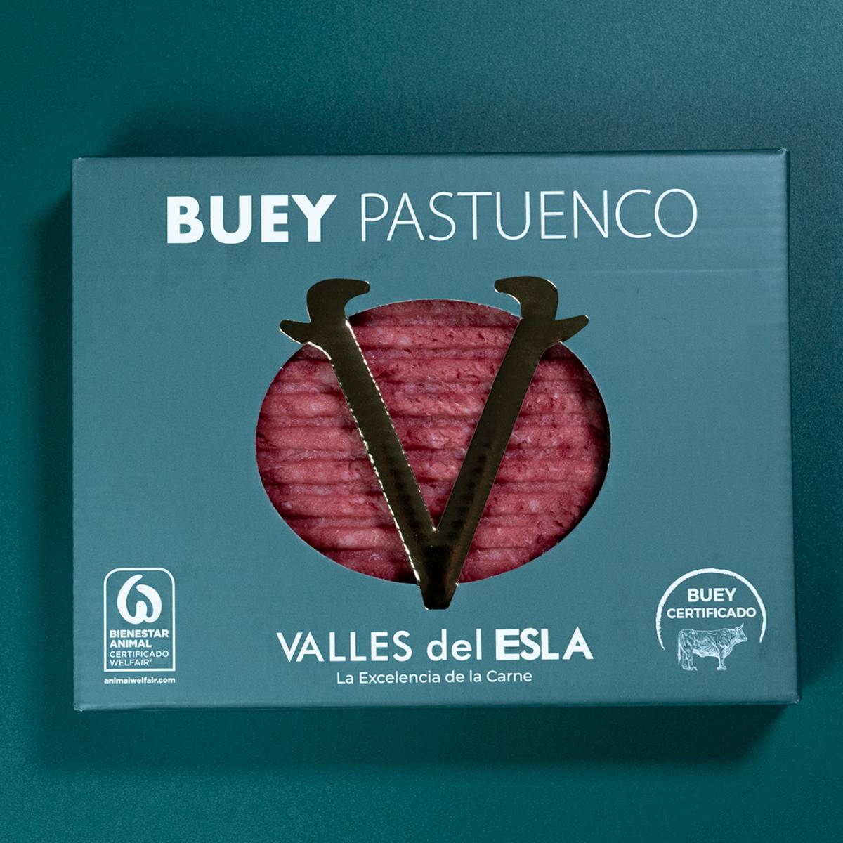 Burger de Buey Valles del Esla, elaborada con carne de bueyes criados en libertad durante más de 6 años en la montaña leonesa. Una hamburguesa de sabor intenso, textura diferencial y jugosidad excepcional.