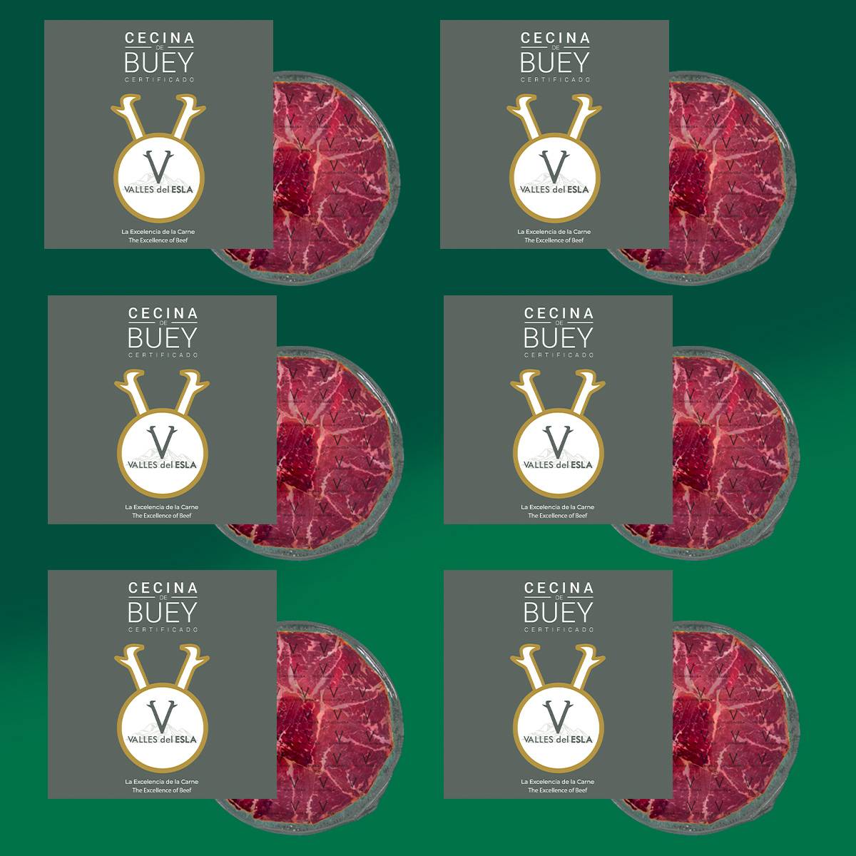 Pack de 6 sobres de cecina de buey Valles del Esla, elaborada con carne de animales criados en libertad en la montaña leonesa y curada lentamente con humo natural. Sabor profundo, aroma intenso y textura única.
